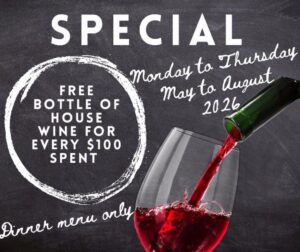 Dinner special – Free bottle of house wine (Monday to Thursday)